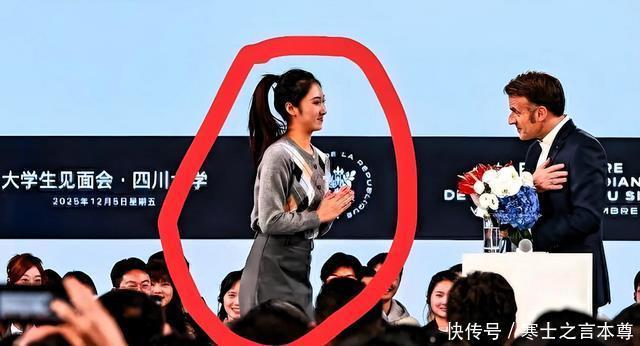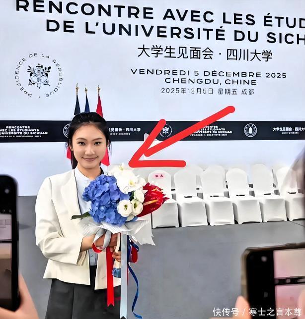 机会是给有准备的人准备的!日前法国总统访问川大,献花女大学生上台为其献花,让人没想到的是总统先生演讲结束后与大学生自拍合影,献花女生李同学就站在总统先生身后,清纯的样子十分抢镜! 这位献花女大学生是川大2023级法语专业的李同学,还是连续两年专业第一的学霸,她能从川大法语专业学生中脱颖而出,并为到访的马克龙献花,并不是凭借颜值,还有专业以及应变能力。