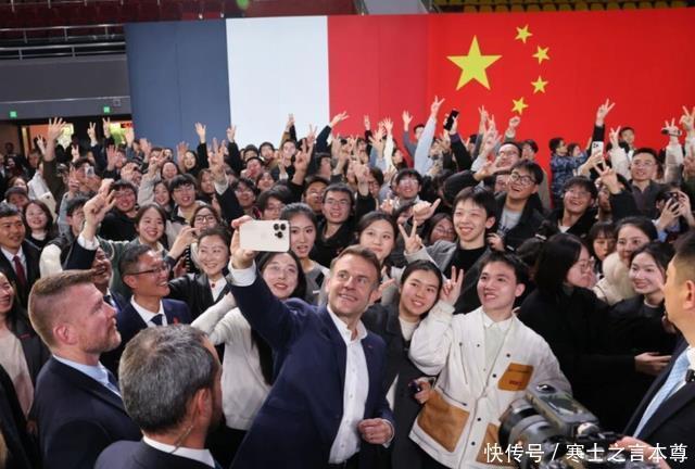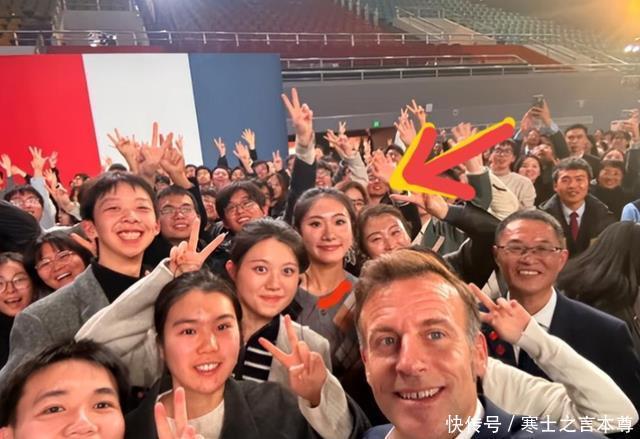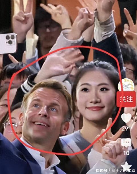 果然优秀的人在哪都发光,她与川大学生一起和总统先生自拍,让人没想到的是总统先生自拍的角度正好对准了为他献花的女生。 这位献花女生上台为总统先生献花,也就短短的十来秒钟,时间虽说短暂,但能说一口流利的法语,让法国总统印象深刻,所以大合影时李同学站在总统先生身后让总统先生一眼就认出。 所以拍照的时候,总统先生把手机的角度对准了献花女生,俩人在大合影中尤为抢镜,别的同学也就露个脸,还有就是有了为总统先生献花的机会,也让李同学在川大学生中脱颖而出。